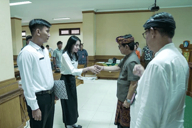 “Penyerahan SK Bupati Badung diserahkan kepada 25 Orang CPNS lulusan PKN STAN dengan rincian formasi Pengolah Data dan Informasi dengan unit Penempatan pada Badan Pengelola Keuangan dan Aset Daerah (BPKAD) sebanyak 4 orang, formasi pengolah data dan informasi dengan unit penempatan Kepala Badan Pendapatan Daerah (Bapenda) sebanyak 19 orang”