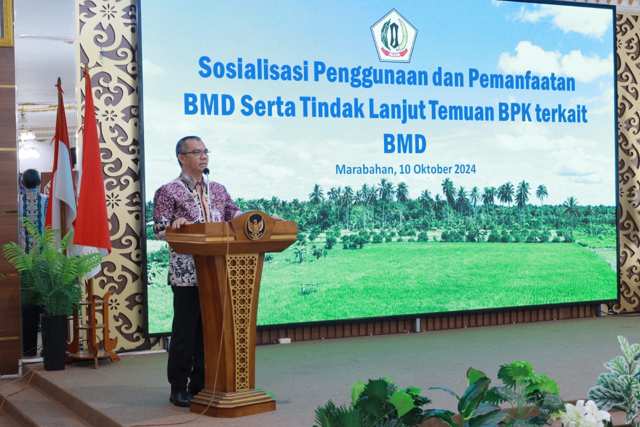 FAKTA – Pemerintah Kabupaten (Pemkab) Barito Kuala melalui Badan Pengelolaan Keuangan dan Aset Daerah (BPKAD) melaksanakan acara sosialisasi pengunaan dan pemanfaatan Barang Milik Daerah (BMD) serta tindak lanjut temuan Badan Pemeriksa Keuangan (BPK) terkait BMD.