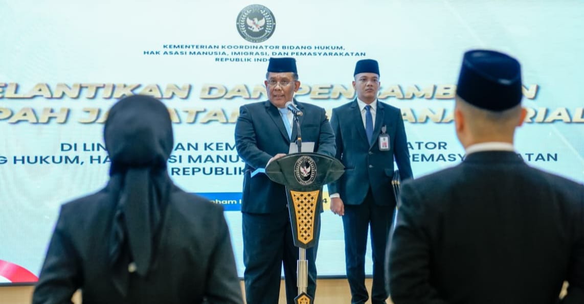FAKTA – Komitmen memperkuat profesionalisme aparatur terus dilakukan Kementerian Koordinator Hukum, Hak Asasi Manusia, Imigrasi dan Pemasyarakatan (Kemenko Kumham Imipas) melalui pelantikan enam pejabat non manajerial yang dipimpin langsung oleh Sekretaris Kemenko Kumham Imipas, R. Andika Dwi Prasetya, di Aula Kemenko Kumham Imipas, Rabu (4/2/2026).