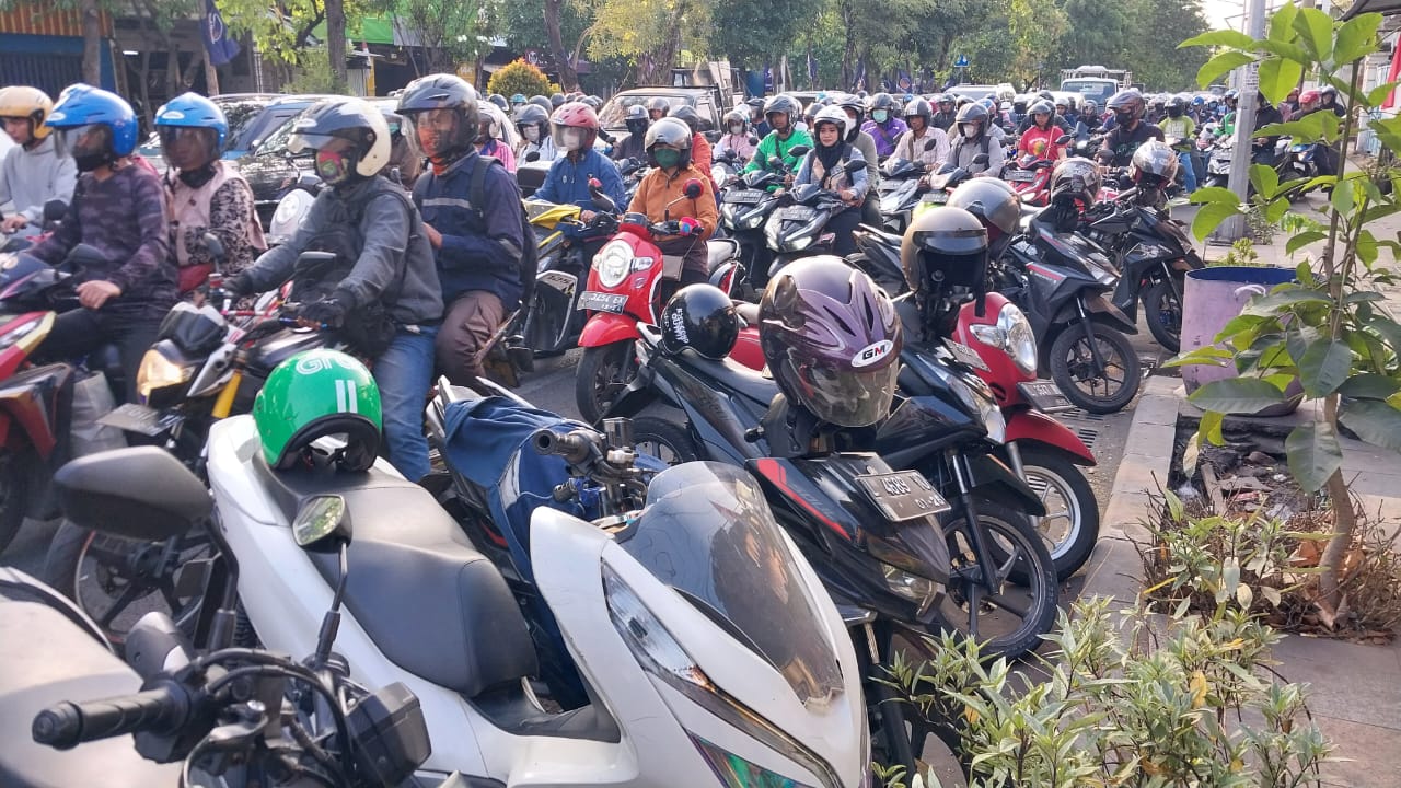 Pengendara motor dari jalur kiri terpaksa harus ke kanan atau ke tengah untuk menghindari parkiran motor tersebut. Akibatnya, motor yang hendak belok kanan dari lajur kiri menghalangi motor lain yang ada di lajur tengah. Akibatnya berdampak pada padat dan macetnya arus lalu lintas.