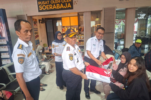 Kegiatan ini dipimpin langsung Kepala Dishub Jatim, Nyono, didampingi Plt Sekretaris Dishub Jatim, Joko Pitoyo, serta Kepala Stasiun Gubeng, Fadjar. Ratusan bendera kecil dibagikan secara simbolis kepada para penumpang yang tengah menunggu keberangkatan, menambah suasana nasionalisme di ruang tunggu stasiun yang saat itu dipenuhi masyarakat dari berbagai latar belakang.
