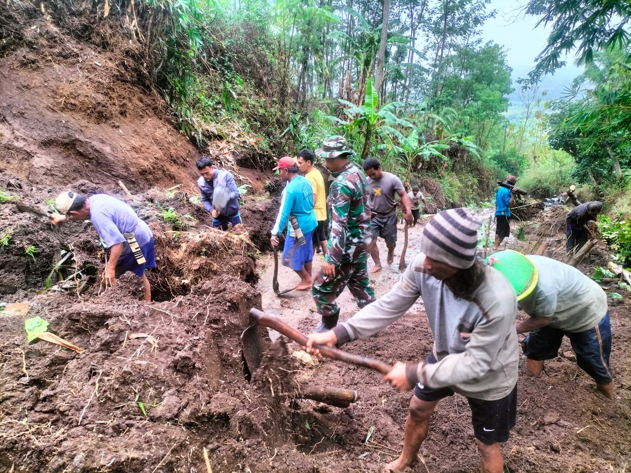 Lanjutnya, tidak ada korban jiwa saat terjadinya longsoran. Puluhan warga masyarakat bersama TNI, BPBD, dan Pemdes setempat melakukan kerja bakti mengevakuasi material longsor.