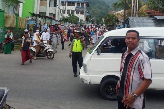 Lebih lanjut kata AKP Widodo, dalam pelaksanaannya masyarakat masih tetap menjaga disiplin protokol kesehatan, terlihat juga pihak panitia penyelenggara Sholat pun terus memberikan imbauan tentang pentingnya menjaga prokes karena Covid-19 masih ada disekitar kita.