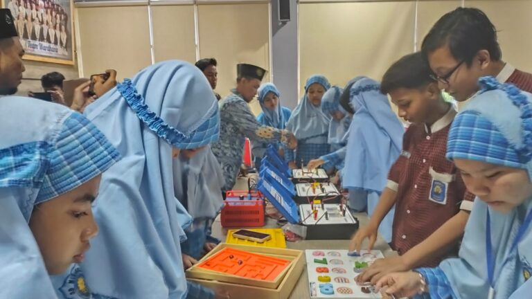 Sebelum acara resmi dimulai, para siswa Muhlas dan Muven terlihat bersemangat mencoba beragam alat peraga yang dipamerkan. Mulai dari perangkat coding dasar yang interaktif, demonstrasi visual frekuensi bunyi, hingga eksperimen kelistrikan sederhana dan praktik merakit robot.