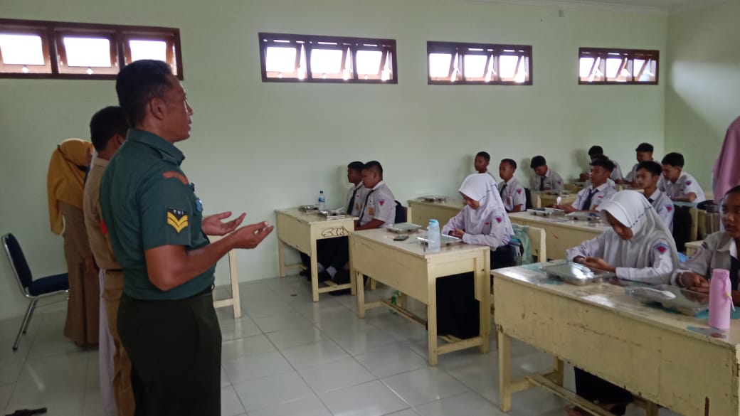 Di tempat yang sama, makan bergizi gratis dibagikan setelah Salat Zuhur oleh SMPN 5 Kota Madiun, didampingi oleh Koramil setempat, para guru dan diliput sejumlah awak media.