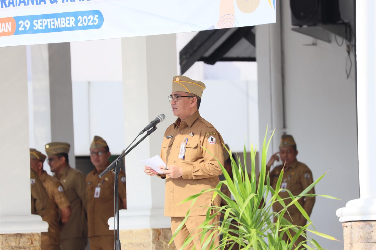 Dalam sambutannya, Sekda menyampaikan apresiasi dan ucapan terima kasih kepada seluruh Aparatur Sipil Negara (ASN) atas kedisiplinan mengikuti apel rutin setiap hari Senin. Ia menegaskan bahwa sikap positif ini harus terus dijaga serta menjadi teladan dalam menciptakan pelayanan publik yang semakin prima.