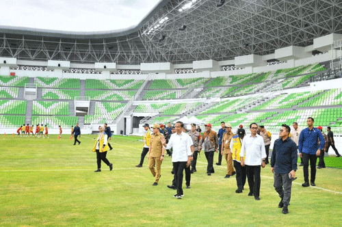 Presiden Jokowi menjelaskan bahwa stadion ini mampu menampung hingga 25 ribu penonton dan dibangun dengan anggaran sebesar Rp587 miliar yang berasal dari Anggaran Pendapatan dan Belanja Negara (APBN). Ia berharap stadion ini dapat segera diserahkan kepada pengelola yang tepat agar dapat dirawat dengan baik.