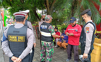 Sapa Warga dan Wisatawan, Tim Pamor Keris Polres Batu Bagi Masker