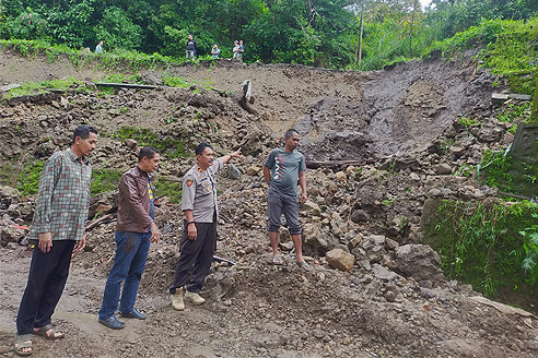 Akibat Hujan Deras, Jalan Poros Makassar Kelurahan Kahu, Bone Longsor