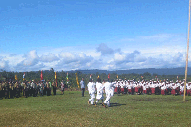 Masyarakat Perbatasan RI -PNG di Distrik Tarup, Papua Gelar Upacara HUT ke 77 RI