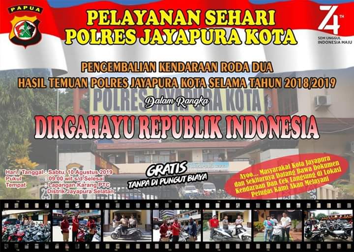 500 LEBIH KENDARAAN RODA DUA AKAN DISERAHKAN SECARA MASAL OLEH POLRES JAYAPURA KOTA