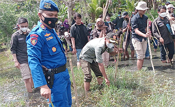 Satpolairud Polres Malang dan Mahasiswa UB Tanam Mangrove di Pantai Kondang Anyar