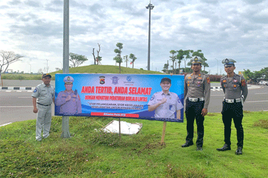 Polres Loteng Pasang Ratusan Spanduk Imbauan Tertib Lalu Lintas di Sepanjang Jalan Bypass