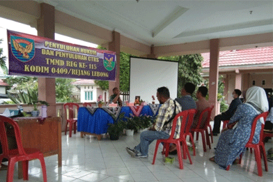 “Penyuluhan hukum dan pencegahan radikalisme yang kita berikan ini untuk menanamkan kesadaran masyarakat supaya taat hukum, kegiatan ini merupakan bagian dari pembangunan non fisik yang dilaksanakan dalam TMMD (TNI Manunggal Membangun Desa) ke-115 Kodim 0409/Rejang Lebong,” ujar Kasdim 0409/Rejang Lebong Mayor Arh M. Zaini Nurdin kepada awak media.