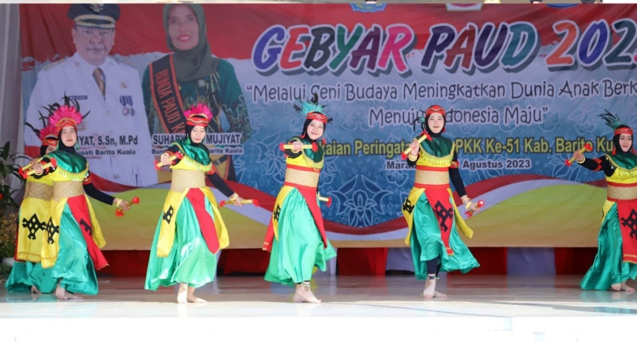 Pj. Bupati Batola Mujiyat mengatakan gebyar PAUD yang telah berlangsung membuktikan anak-anak mampu merasakan kultur budaya melalui tari giring- giring terlebih anak-anak tampil menarik dengan seragam tarinya.