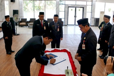 “Tunjukkan komitmen untuk bekerja maksimal, tunjukkan integritas supaya penyelenggaraan pemerintah bersih dari KKN, serta cepat memahami jabatan dan fungsi yang baru,” harap Baupati Balangan Abdul Hadi. (F-913)
