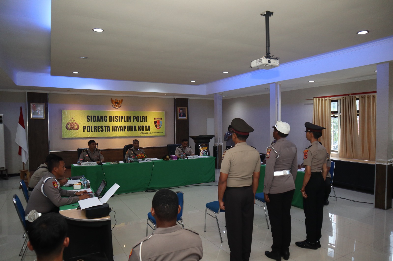 Turut hadir dalam persidangan yakni Kabag Ren Kompol Marthen Luther Rona, M.M., dan Kabag Sumda AKP Sajuri, S.Sos., M.M., selaku Pendamping Pimpinan Sidang, Kasi Propam Ipda Basriman selaku Penuntut, Kasubbag Hukum Bag Sumda Iptu Rudi Rubianto selaku Pendamping Terperiksa dan Brigpol Yulius selaku Sekretaris.