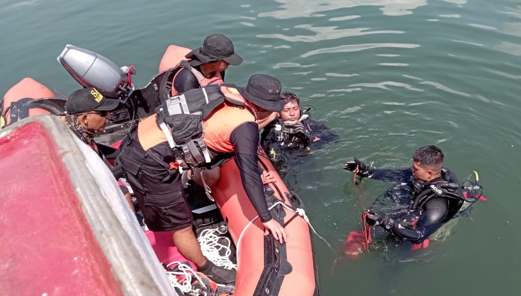 Korban berhasil terdeteksi dan selanjutnya diturunkan 2 orang penyelam.