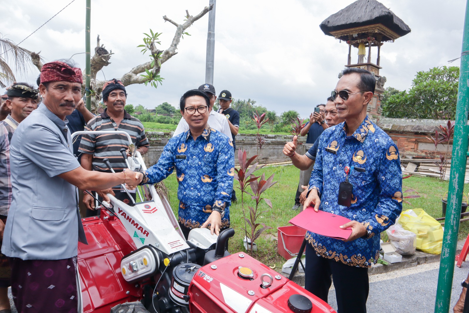 Adapun subak dan kelompok tani yang menerima bantuan mesin traktor yakni Subak Tanah Putih 1 unit, Subak Gerana 1 unit, Subak Buangga 2 unit, Subak Batan Badung 1 unit, Subak Tegan 2 unit, Subak Babakan 2 unit dan Kelompok Tani Bukit Sari Petang 1 unit. Petani juga menerima bantuan 50.000 benih ikan nila dan bibit tanaman sayuran.