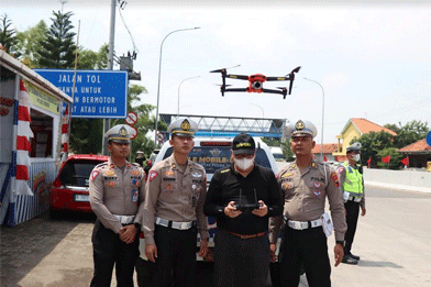 “Untuk ujicoba ETLE drone di simpang tiga exit tol Brebes Timur. dan juga kita bekerja sama dengan Asosiasi Drone Indonesia yang telah tersertifikasi menerbangkan ETLE drone,” Ujar Iptu Doohan Octa Prasetya.
