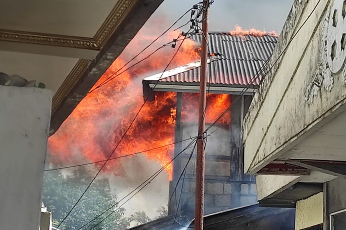 Majalahfakta.id – Diduga akibat Korsleting Listrik, api hanguskan satu petak rumah dua lantai milik Merry Ngamelubun (48) bertempat di Gang Bobara Perumnas III Waena Kelurahan Yabansai Distrik Heram, Kamis (23/6/2022) siang.