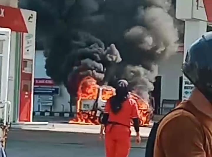 Kobaran api tidak kompromi, langsung membesar berkobar-kobar. Cepat merambat ke sisi lain minibus tersebut. Sejumlah dokumen penting, termasuk STNK, SIM A dan KTP pemilik kendaraan turut menjadi abu. Sejumlah petugas SPBU bersama warga setempat berusaha mendorong kendaraan, menjauh dari pompa BBM guna mengantisipasi timbulnya kebakaran lebih meluas.
