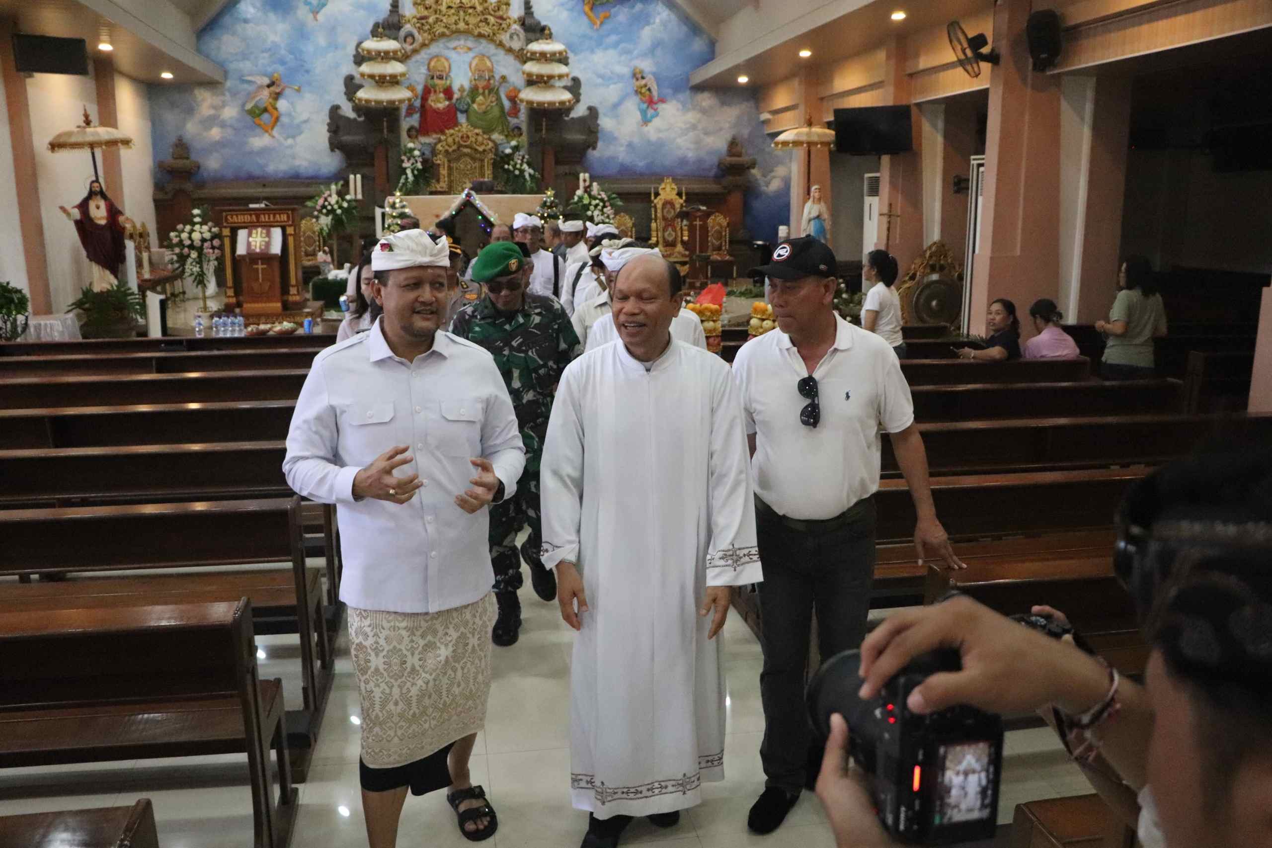 Wabup Bagus Alit Sucipta menyampaikan pemerintah mengunjungi beberapa Gereja untuk memantau terkait kesiapanya perayaan ibadah Hari Natal tanggal 25 Desember. Kunjungan dimulai dari Gereja Katolik Paroky Santo Paulus Kalibul, Padonan Kuta Utara dan GKPB Jemaat “Tirta Amerta” Pelambingan Tibu Beneng Kuta Utara. “Kita diterima sangat hangat sekali sambil melihat-lihat bagaimana kesiapan acara untuk Natal dan ini momentum sangat bagus sekali untuk kita bisa saling toleransi di NKRI. Kita yang ada di Kabupaten Badung bersama-sama dengan FKUB sekaligus juga menanyakan kesiapan perayaan Natal. Atas nama Pemkab Badung mengucapkan selamat Natal kepada warga kami Umat Kristiani semoga Kasih Tuhan bersama dengan kita dalam Perayaan Natal,” ujarnya.