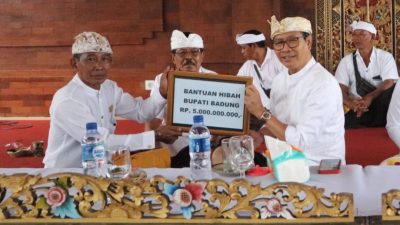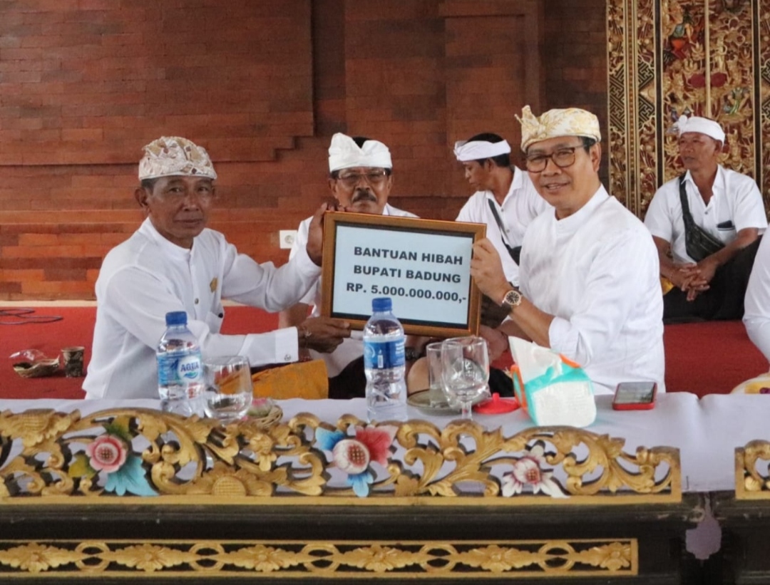 Sebagai bentuk dukungan dan komitmen Pemerintah, Wabup menyerahkan secara simbolis bantuan dana Hibah APBD Perubahan tahun 2023 sebesar Rp5 milyar yang diterima oleh Bendesa Adat Pelaga.