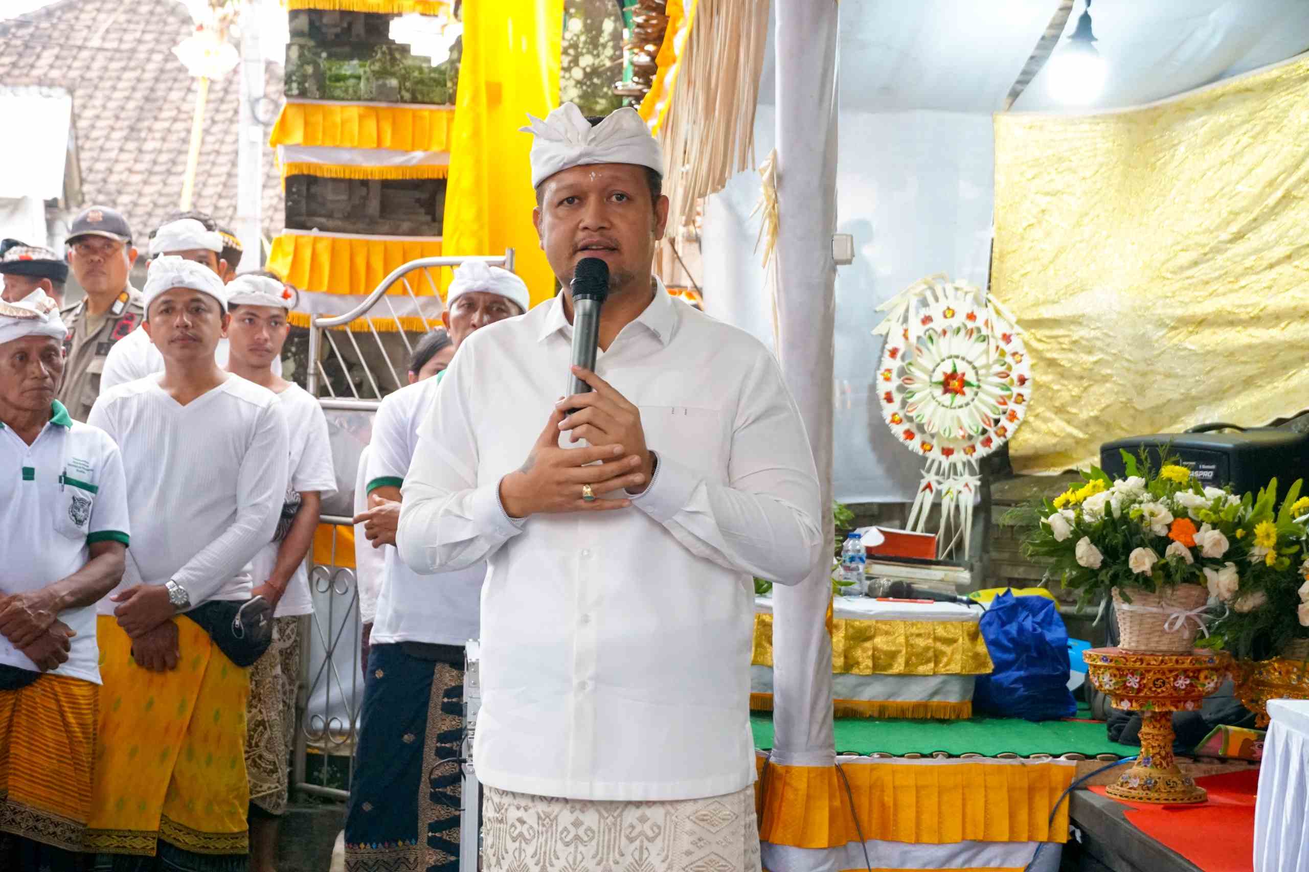 FAKTA – Wakil Bupati Badung Bagus Alit Sucipta menghadiri upacara Padudusan, Ngenteg Linggih, Wraspati Kalpa Madya, Mayama Raja di Pura Kawitan Arya Bongaya Batan Jeruk Kepakisan, Banjar Trijata, Desa Mambal, Kecamatan Abiansemal, Badung, Sabtu (20/12/2025). Dalam upacara ini Pemerintah Kabupaten Badung memberi hibah dana aci sebesar Rp400 juta dan anggota DPRD Badung Putu Yunita Oktarini bersama Made Ponda Wirawan membantu Rp15 juta.