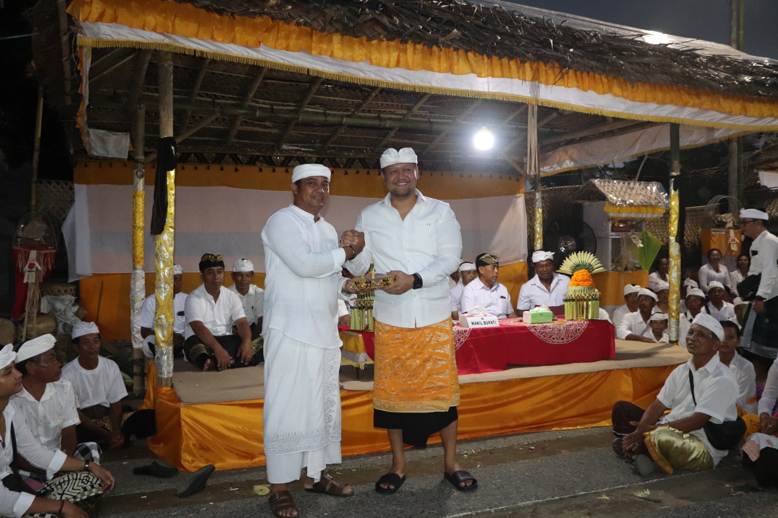 Pada kesempatan tersebut, Wakil Bupati Badung menghaturkan Punia sebesar Rp30 juta kepada Panitia Karya Mangku Yang Api, yang disaksikan oleh seluruh krama.