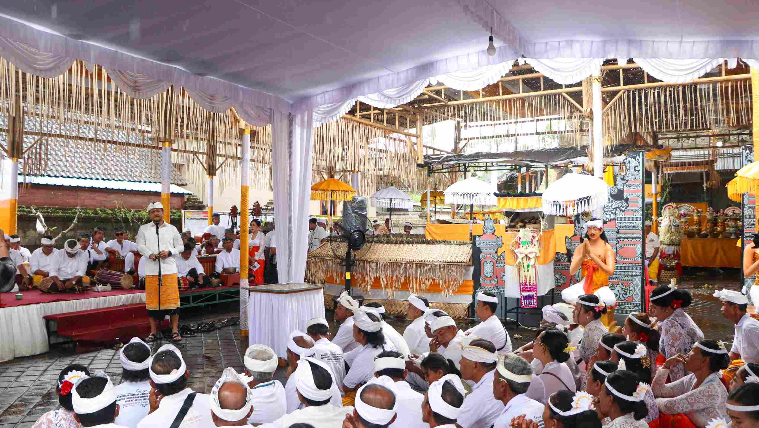 Pada kesempatan tersebut Wabup Bagus Alit Sucipta bersama Yunita Alit Sucipta melaksanakan persembahyangan bersama serta menyerahkan secara simbolis dana aci hibah induk tahun 2025 sebesar Rp 500 juta, serta dari Yunita Alit Sucipta mepunia sebesar Rp10 juta yang diterima oleh prawartaka karya Ida Bagus Gede Surya Darma. Wabup juga berkesempatan membubuhkan paraf pada prasasti.