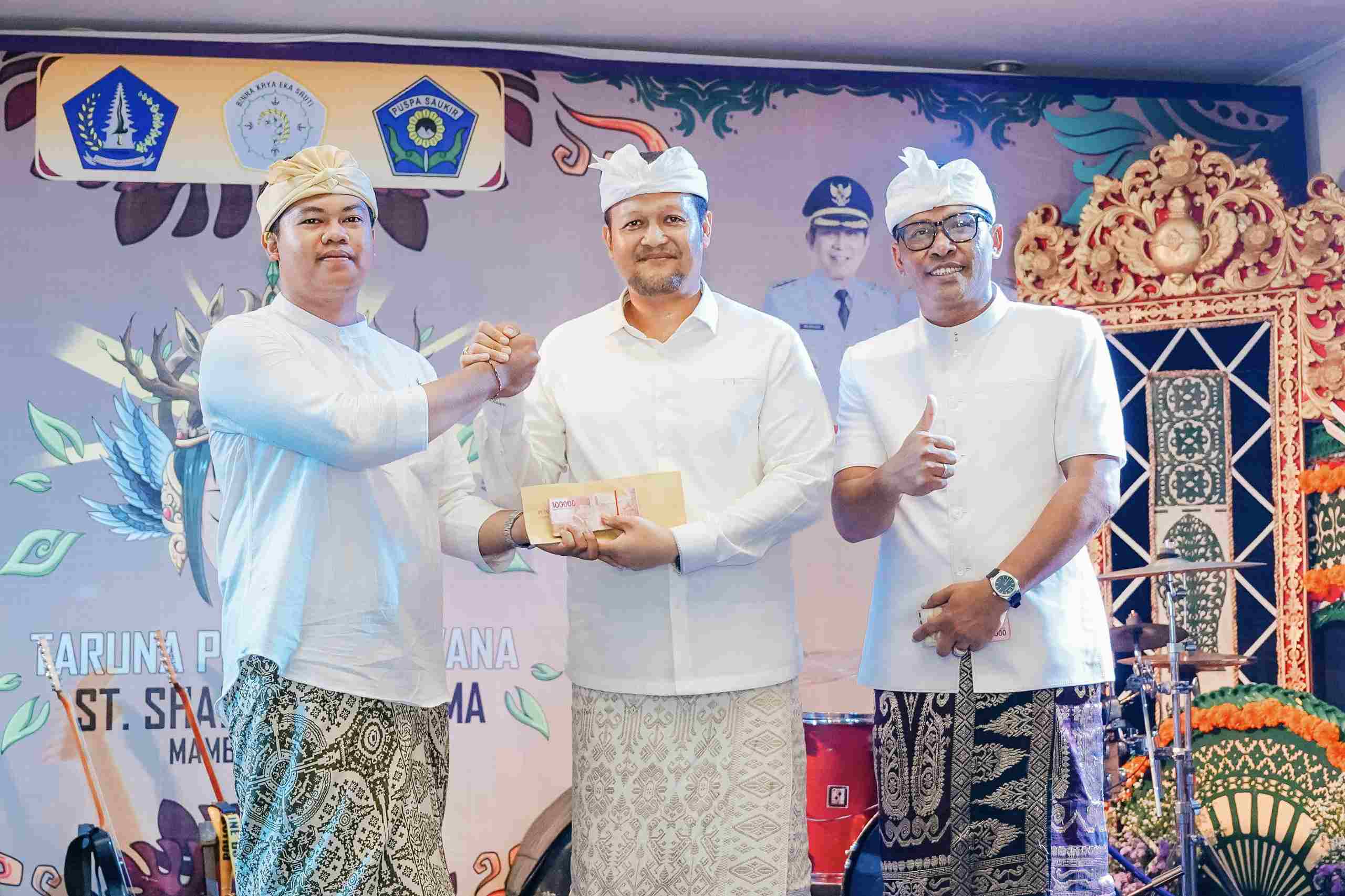 Pada kesempatan tersebut, Wakil Bupati Badung menyerahkan bantuan dana sebesar Rp20 juta yang diterima langsung oleh Ketua ST Shantika Dharma, Putu Yogi Pramanata, dan disaksikan oleh seluruh undangan serta krama Tempekan Mambal Kajanan.