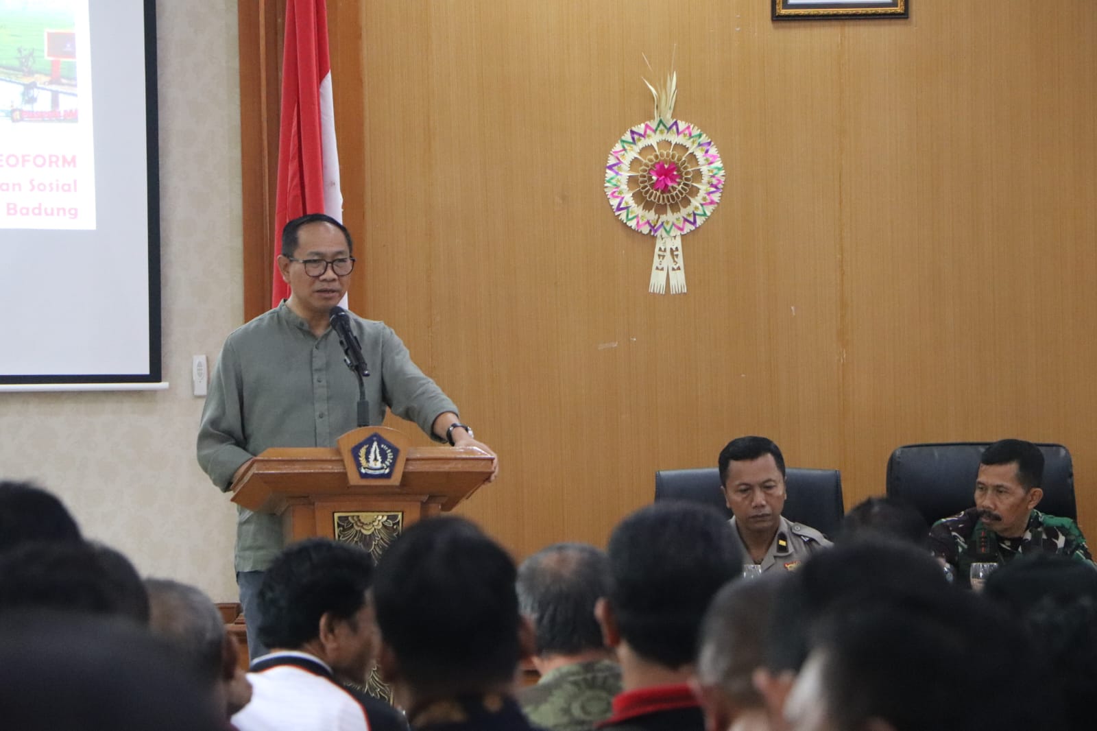 FAKTA – Wakil Bupati Badung I Ketut Suiasa menghadiri Rapat Koordinasi (Rakor) yang dirangkaikan dengan Sosialisasi Pendataan Kesejahteraan Sosial yang diinisiasi Dinas Sosial Kab. Badung bertempat di Ruang Rapat Kantor Camat Kuta Utara, Jumat (31/1/2025). Hadir Camat Kuta Utara Putu Eka Permana, Forkopim Kecamatan Kuta Utara, Kabid Perlindungan Jaminan Sosial Putu Sri Yuniarti, perwakilan Dinas PUPR, para Lurah dan Perbekel se-Kuta Utara, Forum BPD, Kepala Lingkungan, Kelian Dinas, Forum LPM, para Surveyor dan undangan lainnya.