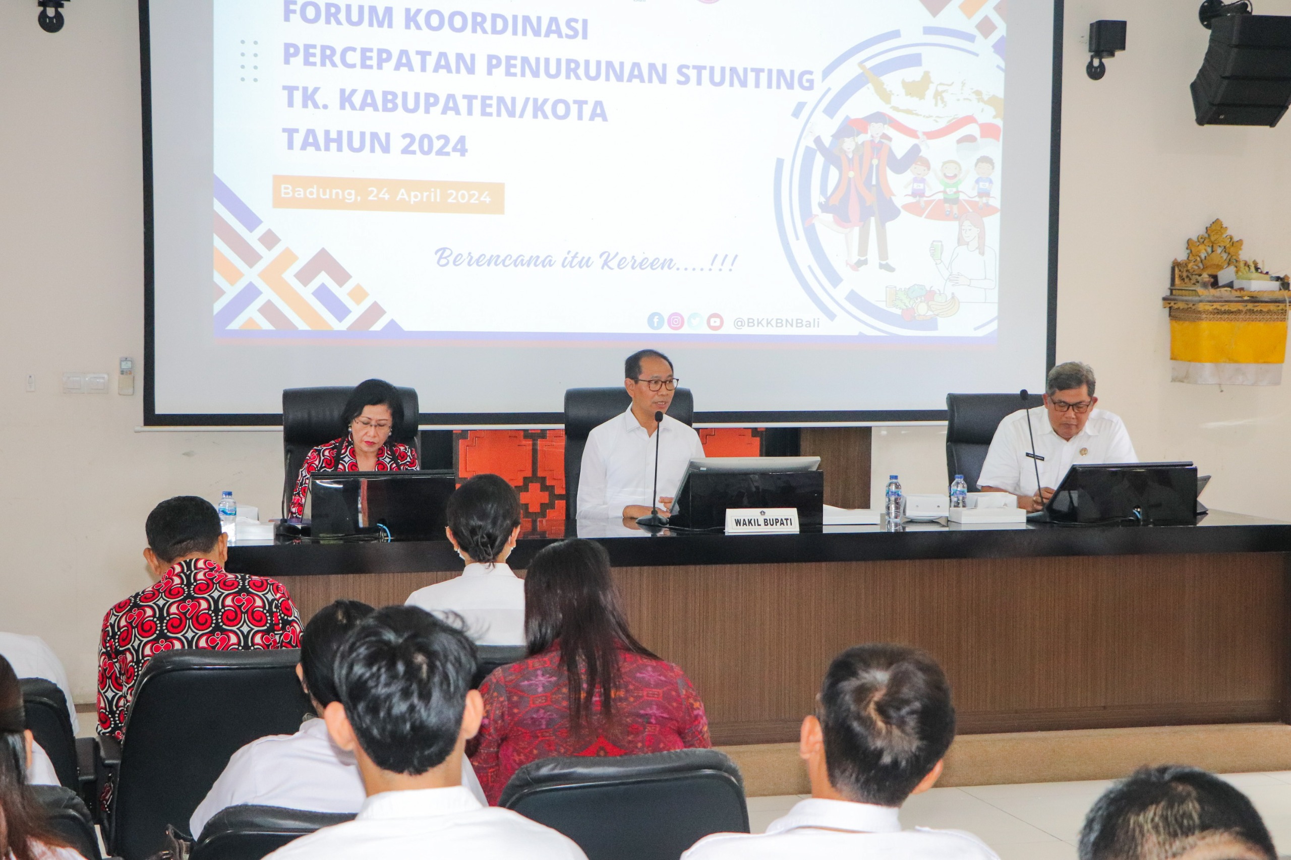 FAKTA – Wakil Bupati Badung Ketut Suiasa membuka Kegiatan Forum Koordinasi Percepatan Penurunan Stunting Kabupaten/Kota tahun 2024 di Ruang Rapat Rumah Jabatan Wakil Bupati Puspem Badung, Rabu (24/4/2024). Turut hadir Ketua Satgas Stunting Provinsi Bali Made Ayu Witriasih, Kadis P2KBP3A Nyoman Gunarta, beserta dinas terkait di lingkup Kabupaten Badung.