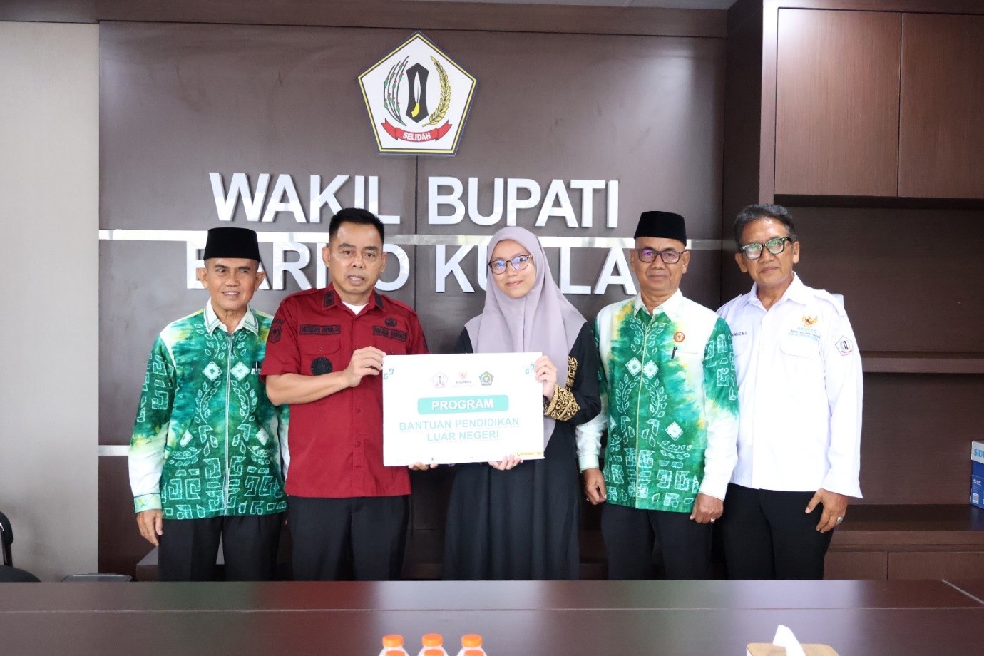 FAKTA – Pemerintah Kabupaten Barito Kuala kembali menegaskan komitmennya dalam meningkatkan kualitas sumber daya manusia (SDM) melalui program bantuan Pendidikan. Wakil Bupati Barito Kuala, Herman Susilo, menyerahkan secara simbolis beasiswa kuliah luar negeri kepada dua mahasiswa berprestasi. Penyerahan berlangsung di ruang kerja Wabup, Kamis (20/11/2025).