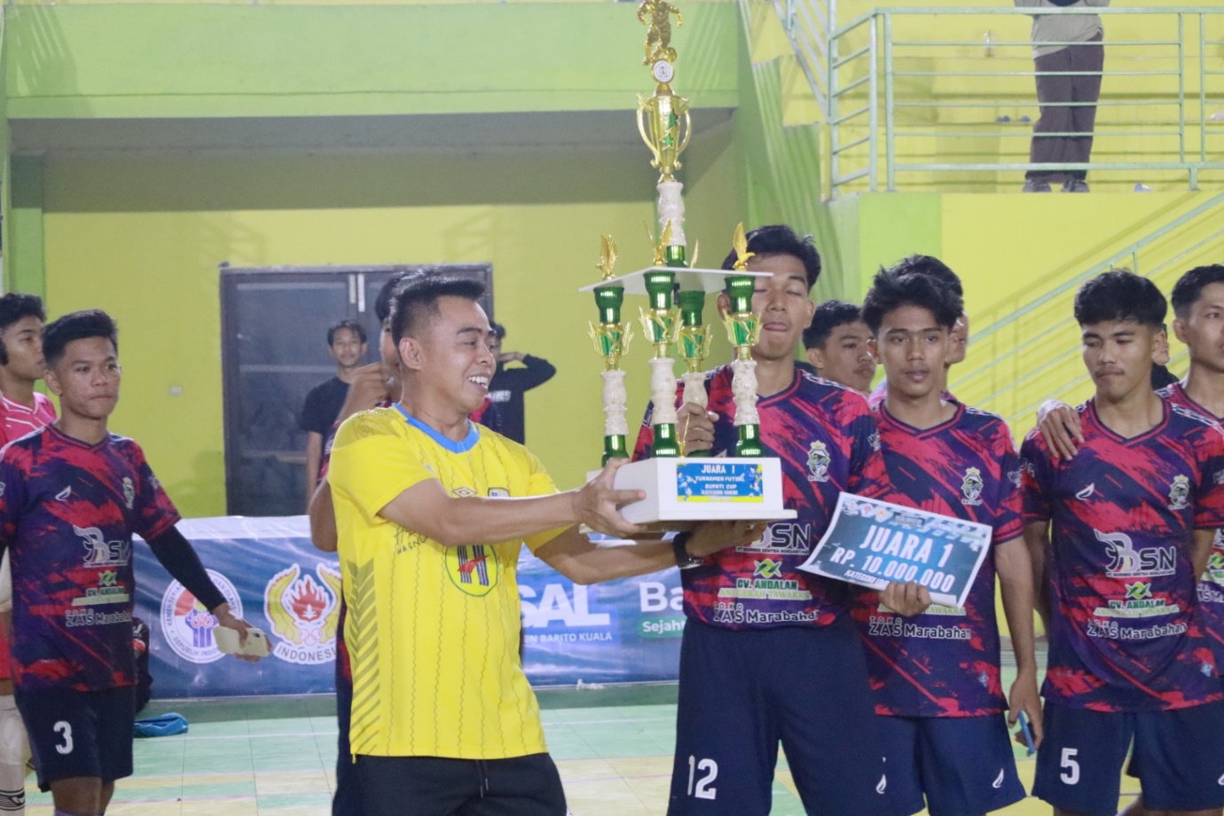 FAKTA – Wakil Bupati Barito Kuala, H. Herman Susilo, menghadiri acara penutupan Turnamen Futsal Bupati Cup 2025 sekaligus menyerahkan piala kepada para pemenang di Gedung Olahraga (GOR) SETARA Barito Kuala, Senin malam (30/6/2025).