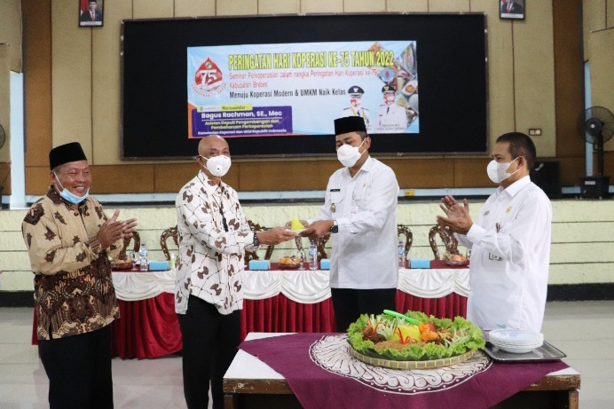 “Mari tunjukan kembali eksistensi koperasi untuk mensejahterakan masyarakat,” ajak Wakil Bupati Brebes Narjo SH MH saat membuka Seminar Perkoperasian dalam rangka Hari Koperasi ke-75 di Gedung Korpri Brebes, Rabu (20/07/2022).