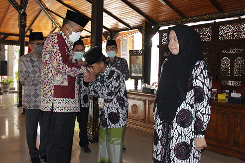 FAKTA – Wakil Bupati Brebes Narjo melepas kafilah Musabaqoh Tilawatil Qur’an (MTQ) XXIX tingkat Provinsi Jawa Tengah tahun 2022. Pelepasan ditandai dengan pengalungan tanda peserta oleh Wakil Bupati Brebes kepada perwakilan peserta di Pendopo Bupati, Brebes, Jumat (22/7/2022).