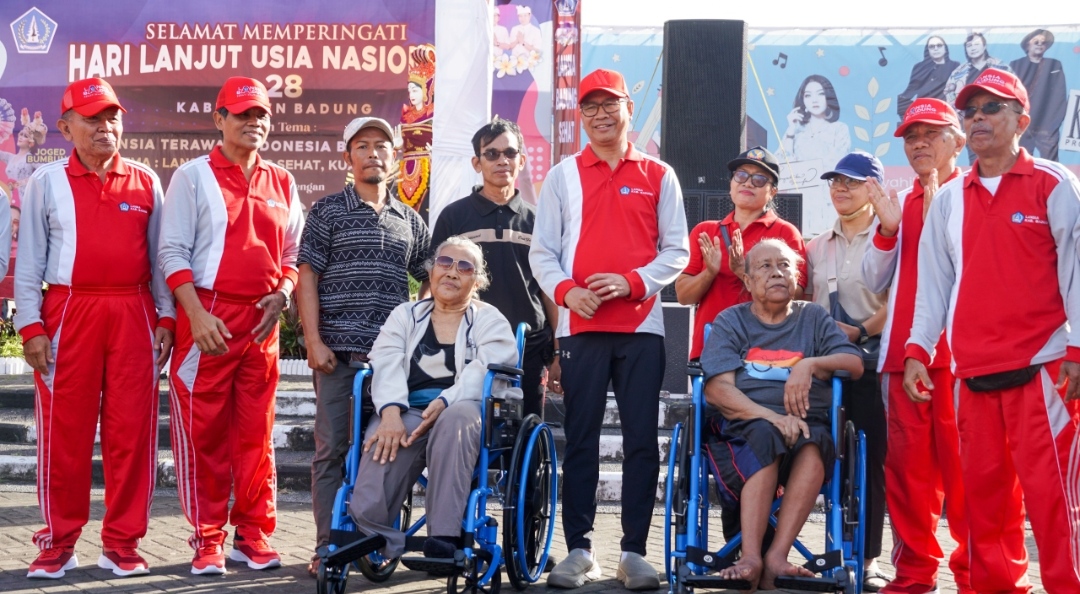 FAKTA – Wakil Bupati Badung I Ketut Suiasa yang juga Ketua Komda Lansia Kabupaten Badung menghadiri acara Peringatan Hari Lanjut Usia Nasional (HLUN) Ke-28, Jumat (12/7/2024) di lapangan Mangupraja Mandala Puspem Badung. Acara dirangkaikan dengan Jumat Ceria bersama UMKM Badung serta pemberian seragam olahraga kepada lansia se-Kabupaten Badung dan penyerahan 2 buah kursi roda kepada 2 orang lansia disabilitas.