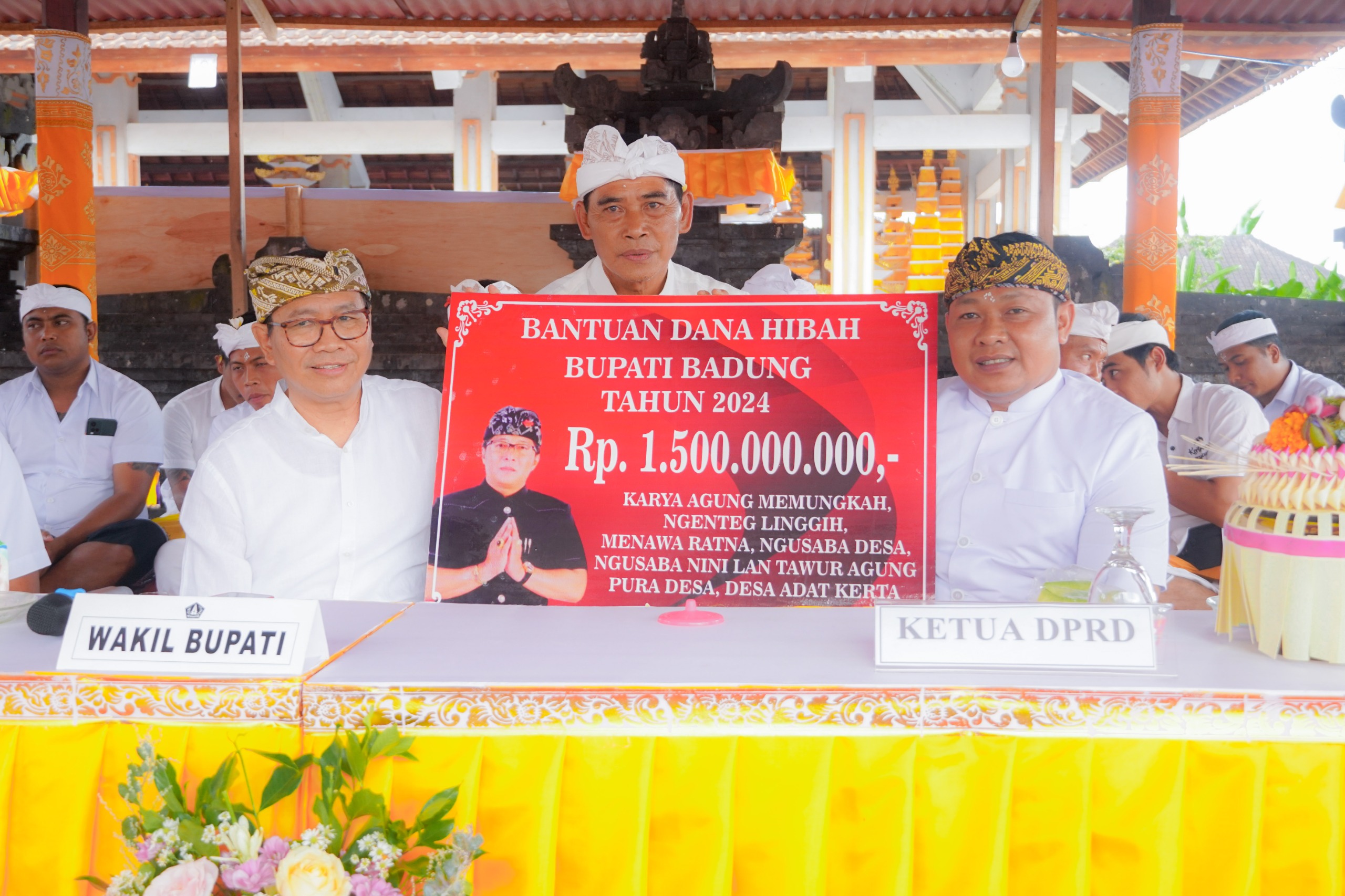 Sebagai wujud bhakti dan dukungan pemerintah, Wabup. Suiasa menyerahkan dana upacara secara simbolis sebesar Rp1,5 Miliar dan Pemerintah Desa Petang membantu Rp30 juta yang diterima Bendesa Adat Kerta I Wayan Gede Suwetra.