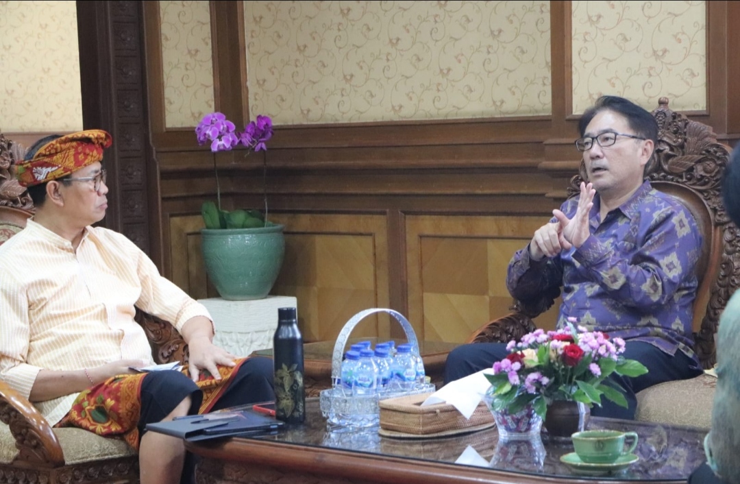 FAKTA – Wakil Bupati Badung I Ketut Suiasa didampingi Kadis Pariwisata diwakili Sekretaris Dinas Pariwisata A.A. Raka Yuda, menerima kunjungan Konsulat Jenderal (Konjen) Pemerintah Jepang di Bali, Mr. Miyakawa Katsutoshi di Puspem Badung, Kamis (11/7/2024). Kunjungan Konsulat Jenderal Jepang untuk melakukan silaturahmi dan perkenalan diri, karena Iq baru satu bulan bertugas di Bali.