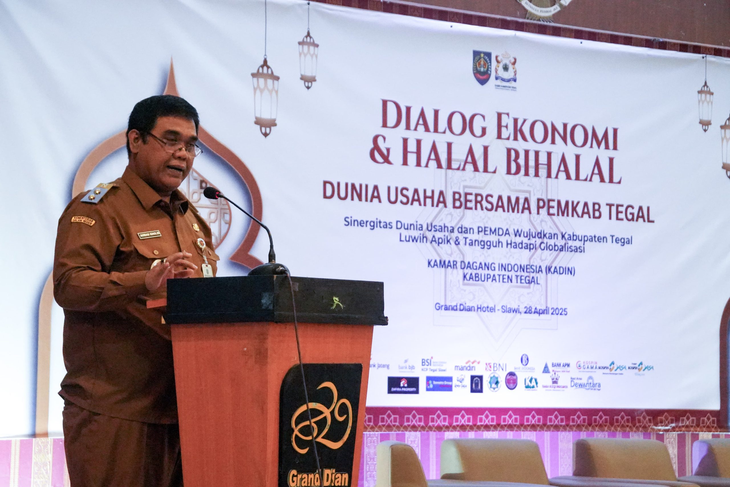 FAKTA – Wakil Bupati Tegal, Akhmad Kholid, menghadiri acara Dialog Ekonomi dan Halal Bihalal yang diselenggarakan oleh Kamar Dagang dan Industri (KADIN) Kabupaten Tegal pada hari Senin (28/4/2025).