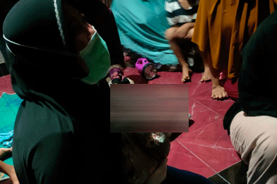 Berselang beberapa menit Bidan Desa pun datang dan langsung memberikan pertolongan pertama pada bayi malang tersebut.