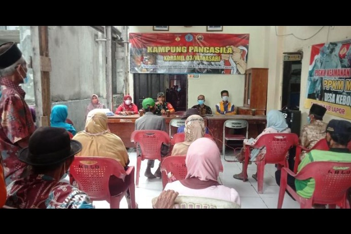 Majalahfakta.id – Masyarakat Desa Keboledan, Kecamatan Wanasari Kabupaten Brebes, Jawa Tengah, menerima sosialisasi butir-butir Pancasila dari Koramil 03 Wanasari Kodim 0713 Brebes di aula balai desa setempat, yang juga dihadiri unsur Polri (Polsek Wanasari) dan Sairun selaku Kades setempat, Selasa (7/6/2022).