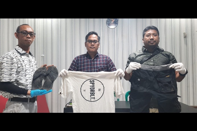 Kompol Ryan menjelaskan, adapun ciri – ciri pakaian kaos putih bertuliskan Spydrblt EST 91, Celana hitam pendek dengan merk Alone, dan sandal jepit warna hitam merk Eiger.