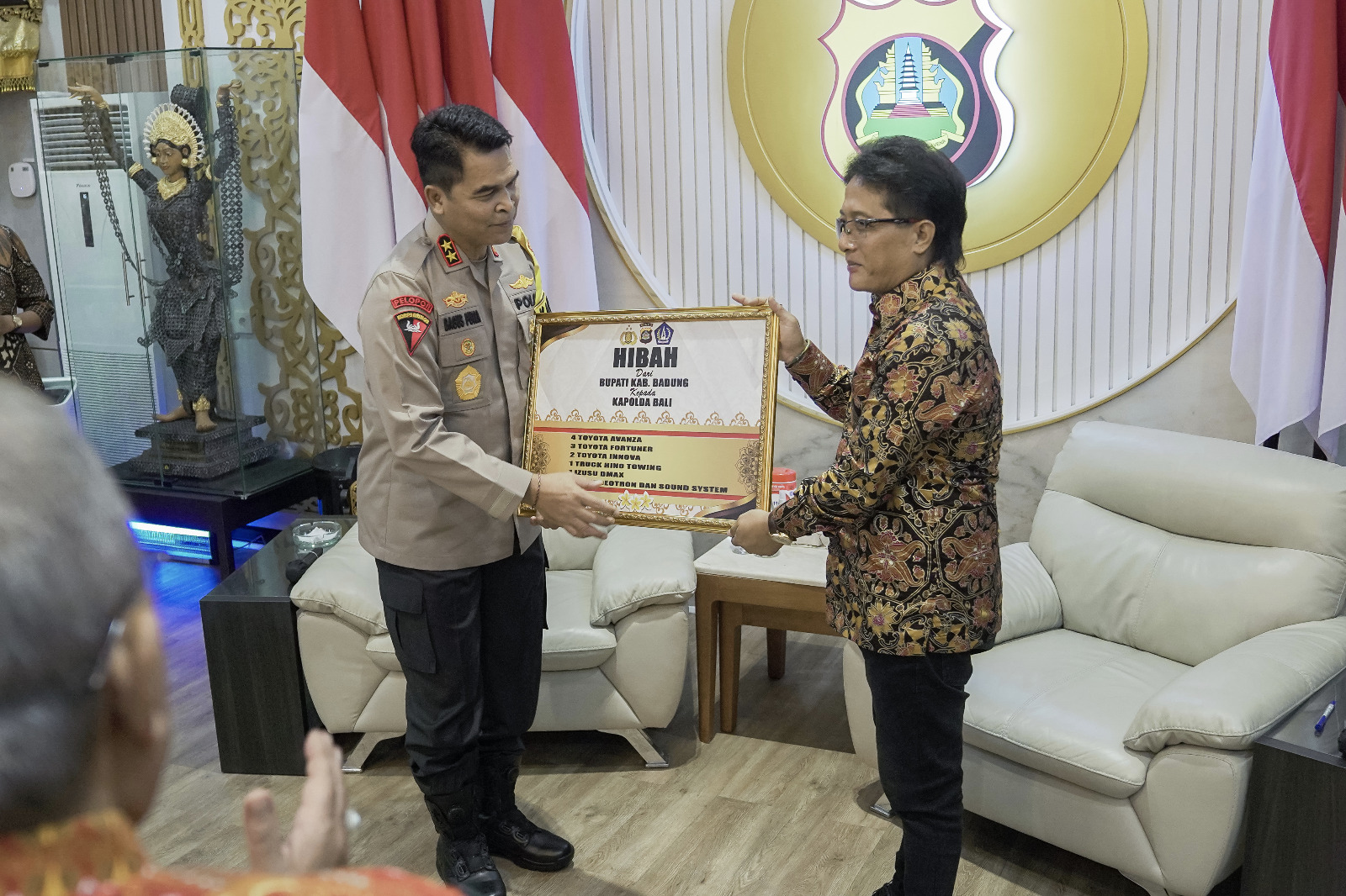 Selanjutnya di Polda Bali, Bupati Giri Prasta mengatakan, penyerahan hibah ini sebagai wujud sinergitas Pemkab Badung dengan instansi vertikal salah satunya Polda Bali. Badung merupakan salah satu kabupaten yang membutuhkan keamanan dan kenyamanan karena 85 persen pendapatan Badung bersumber dari pariwisata.