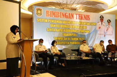 “Dengan menjalankan sistem pemerintahan yang efektif, adil, jujur, transparan dan akuntabel, Pemkab Purworejo bertekad mewujudkan Pemerintahan yang bersih, salah satunya adalah dengan mengimplementasikan SPIP,” kata Wakil Bupati Purworejo Hj Yuli Hastuti SH saat memberikan sambutan pada acara pembukaan bimtek.